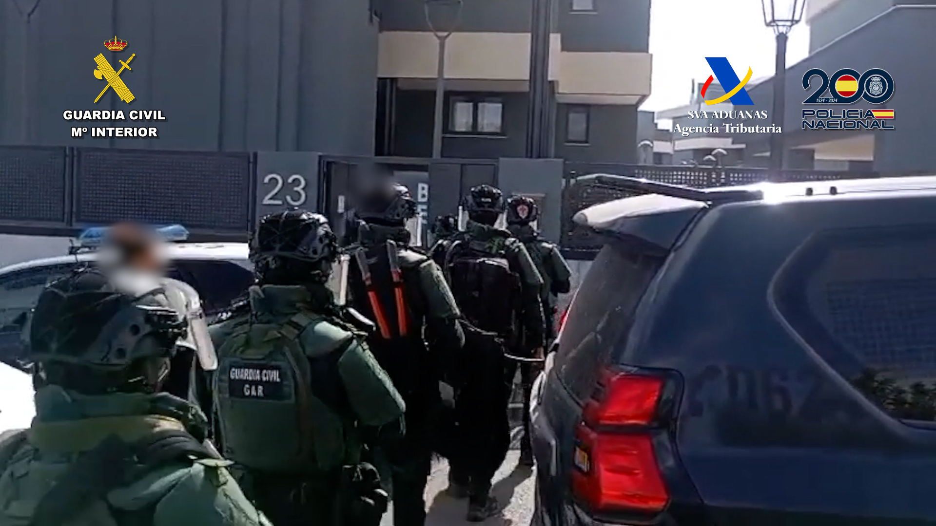 Han sido detenidas 30 personas y se han realizado 19 registros en los que se intervino más de 2.475 kilos de cocaína, más de 166.000 euros en efectivo, joyas y relojes por valor de 100.000 euros, ocho vehículos de alta gama, armas de guerra, 215 garrafas de gasolina, diverso equipo náutico y escalas utilizadas para los asaltos así como dispositivos de geolocalización. De igual manera, se han bloqueado activos inmobiliarios por valor de casi cinco millones de euros y cuatro monederos virtuales de criptomonedas.